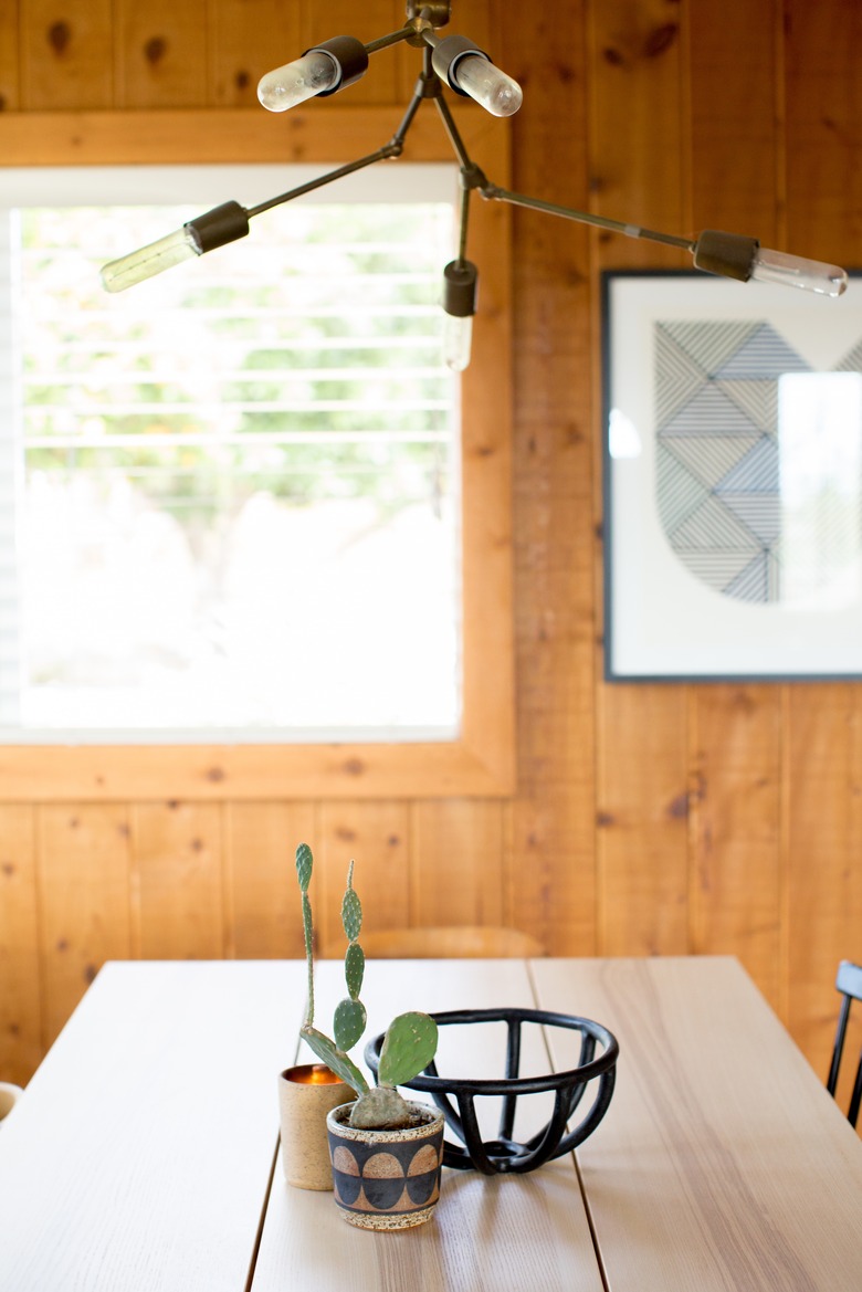 Part of the charm of industrial lighting is that you can sometimes recreate it yourself with one trip to the hardware store. Pete Panciera of the home goods brand Norden hand built this sputnik-style industrial chandelier, which anchors his open living room-dining room, in about six hours. The brass continues to age and change.