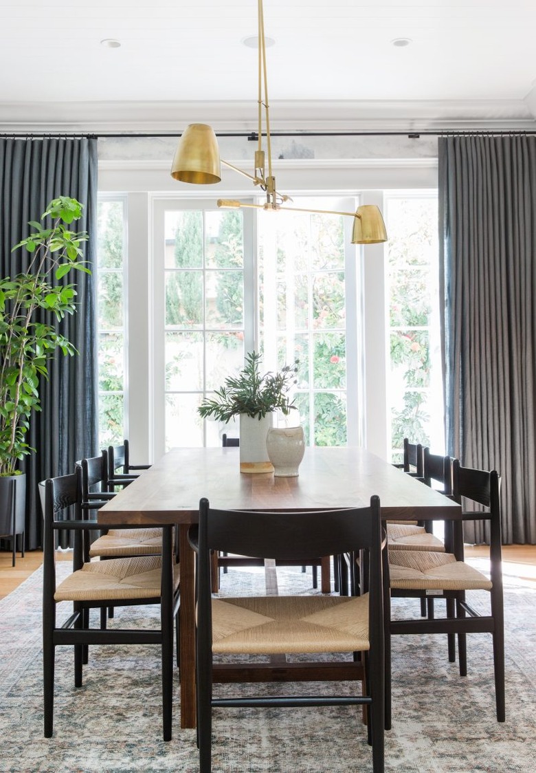 A dining room table idea is not the kind of thing that you commit to lightly — it's not a piece of furniture that you buy and then toss after a few years. At least, it shouldn't be. Try to think of your table as an investment, no matter how much it costs: This is an important piece that you'll want to keep, even if its role adapts over the years. (You might only have space for something petite right now, which will fit in your studio apartment, but in a bigger place down the road, it could become a lovely dinner table or desk.) Consider the quality of the material and the joinery first and foremost, and be wary of buying any furniture just because it's trendy. A dining room table should stand the test of time. The sturdy wood piece in this dining room by Amber Lewis will surely last for years to come.