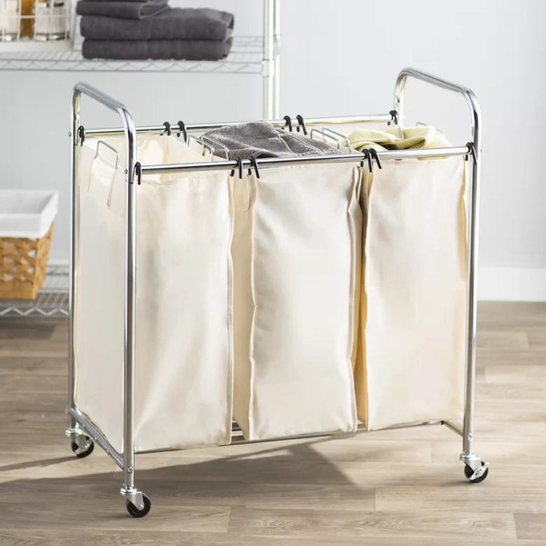 There is little joy in having to lug your laundry from point A to point B, whether you have a laundry room or have to head to the laundromat. Especially if you have a large household, this step can be labor intensive (aka heavy) and take several trips. Having your hamper on wheels can provide some relief. You can choose the DIY approach of adding a dolly to the bottom of your existing hamper using Velcro tape or other creative means, or purchase a rolling hamper. If you're shopping for one, do yourself a favor and choose one with separate compartments for presorting colors and whites to eliminate that step in your laundry process.