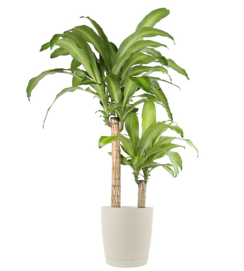 The corn plant (Dracaena fragrans Massangeana) looks like a regular corn plant with an exceptionally beautiful growth habit. The erect trunk — which grows to 6 feet indoors or 20 feet outdoors — offers arching green lance-like leaves a couple of feet long, each carrying a broad yellow band in its center. This graceful and cheerful plant will astound you with its ability to resist almost any combination of growing conditions in your entryway, from full sun to shade. It is said to be unkillable and can greet you at the door for decades to come.