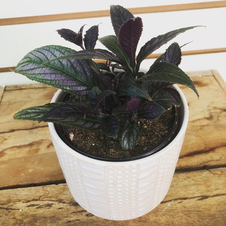 Persian shield (Strobilanthes dyeranus) will inspire and thrill you. This gorgeous foliage plant is from Myanmar, not Persia, but the 8-inch leaves are shaped like little armor shields ready for battle and the iridescent purple gives them a silvery metallic appearance. It makes a terrific entryway houseplant for a sunny area since it tends to bloom during winter. It grows to 3 feet tall and, when it blooms, shows off with tiny violet flower spikes.