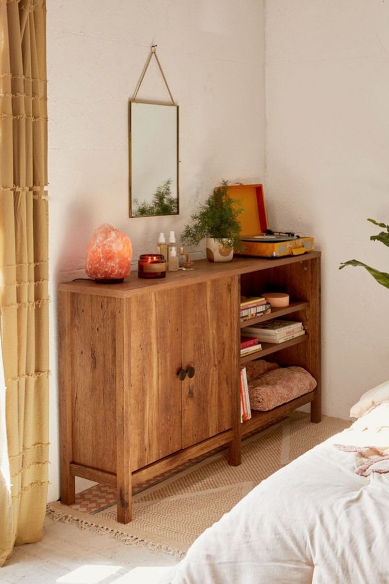 Finding enough living room storage for all your odds and ends can be tough when you live in a small space. One solution: a super skinny media stand, like this 12-inch-deep cabinet from Urban Outfitters ($349). Place books and objets d'art in the open shelving, and use the closed cabinetry to tuck away things better left out of sight.