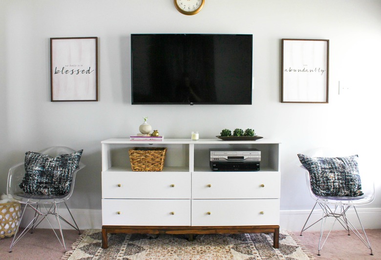 There's no better place for a classic IKEA hack than your living room. Katie from Purely Katie transformed a plain pine TARVA dresser into statement-making living room storage. The dresser only costs $179, making this entertainment unit option a serious steal — and as a bonus, you can customize it to fit your look.