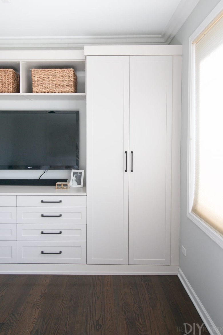 If you've got the space, nothing beats custom built-ins. By designing a custom entertainment unit that perfectly suits your living room, you can add the exact storage you need — like shelving for your enormous collection of vintage VHSs. Hiring a carpenter to craft your new unit can be pricey, like Casey at The DIY Playbook did for this gorgeous bedroom built-in, but DIYing isn't too difficult if you've got basic woodworking skills.