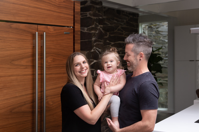Now, the young family — their daughter, Olive, is almost one — loves the social nature of the home, with its wet bar, and oasis-like backyard, centered around the striking pool.