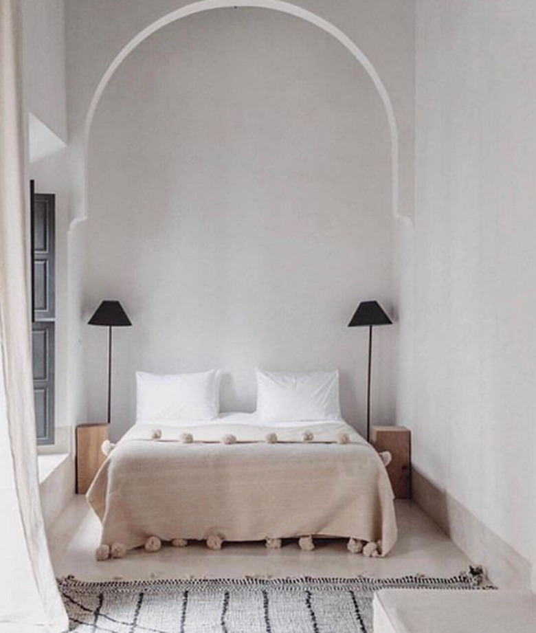 You don't have to forgo all other styles in order to incorporate a bit of that Scandi-goodness into your boudoir. With its grand arch and pompom-trimmed throw, this bedroom idea incorporates some distinct Moorish design influences, but the muted color palette, lime-washed walls, and sparse decor also read Nordic. Riad 42 Marrakech, a destination hotel firmly on our bucket list, combines the two design principles for a chic getaway full of style.