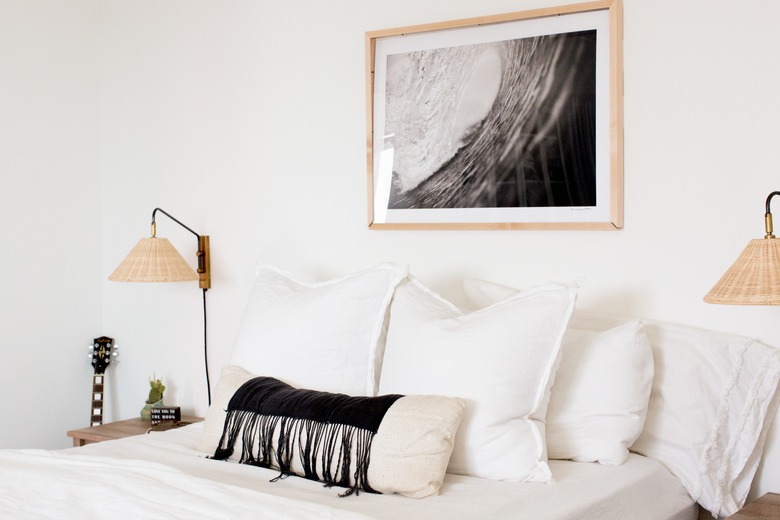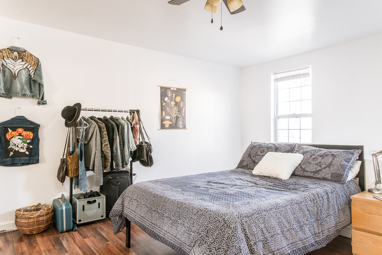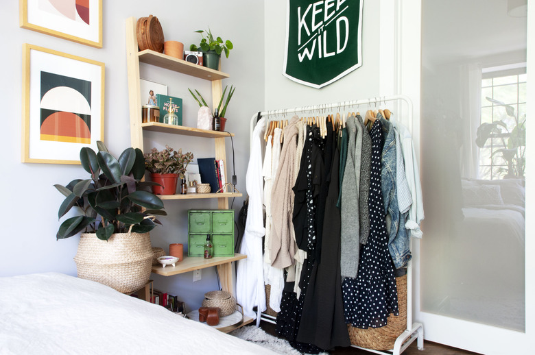 But what if you don't have the luxury of space? Small spaces actually have the added bonus of being inherently cozy — a particular boon when dealing with bedroom ideas that strive for cozy. After all, bedrooms should be sanctuaries where we want to cocoon ourselves and feel safe. If you're dealing with a particularly tiny space, you'll want to minimize clutter, be efficient with your storage, and select multi-tasking furniture. A small bedroom requires a smaller bed and might necessitate placing your bed in a corner. Not ideal, but workable. And to compensate for the lack of one bedside table, select an option with a bit more surface area to sit on the free side of the bed and consider mounting shelving to stash books or display pictures. Pro tip: Keep the area above your bed free of knick-knacks if you live in an earthquake zone.