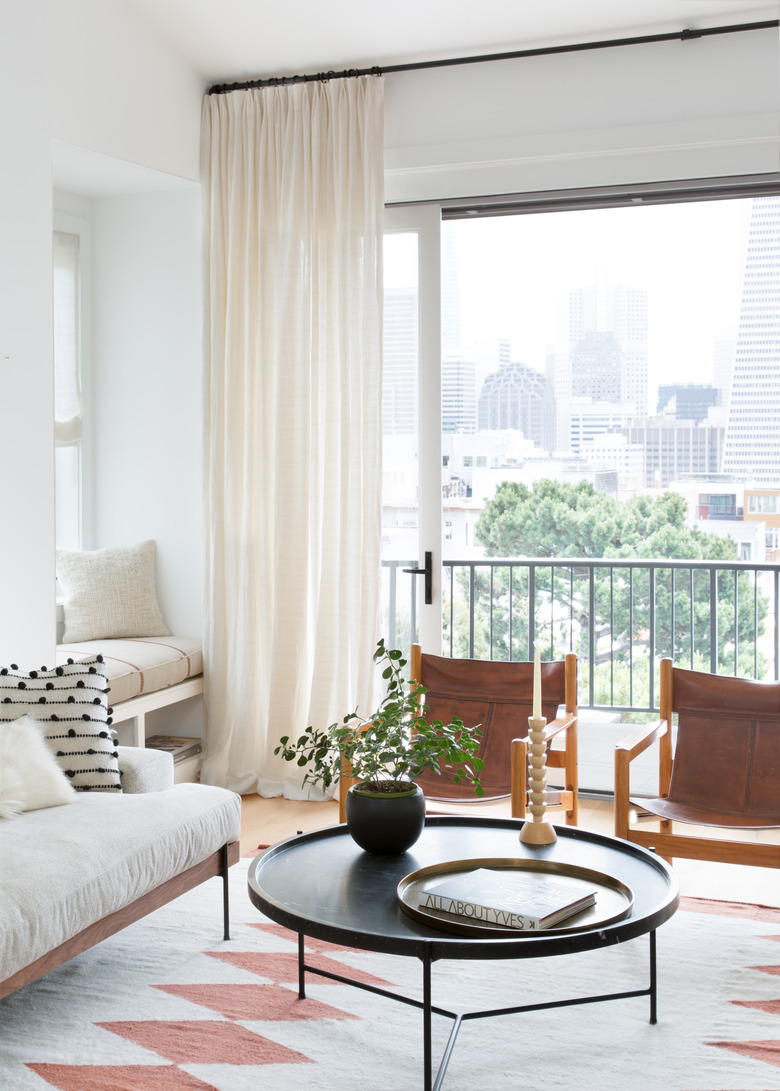 Peña picked furniture that felt casual but polished and added color and texture with rugs, pillows, and other textiles. She also made sure the home's newest resident moved into a space that already felt like it was hers. "[We] made it a point to incorporate layers of texture and personal touches to make her truly feel at home in San Francisco," she says.
