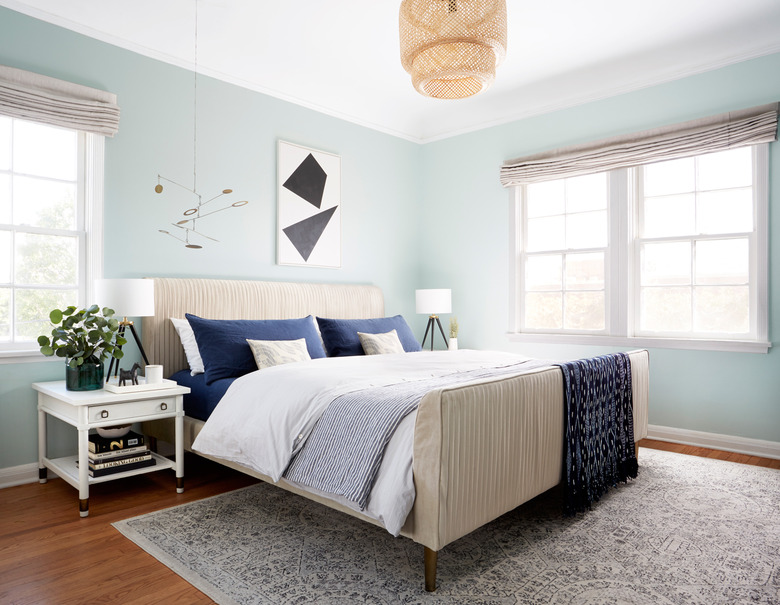 Natural, organic materials are a staple of midcentury design, so this inexpensive woven pendant from IKEA in Orlando Soria's bedroom makeover injects just the right amount of midcentury style. Woven textures are a great option for adding much needed texture and interest without the use of color or patterns.