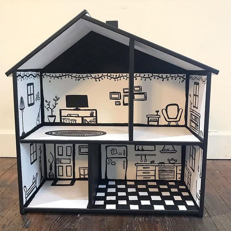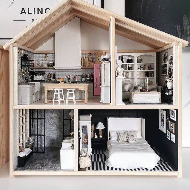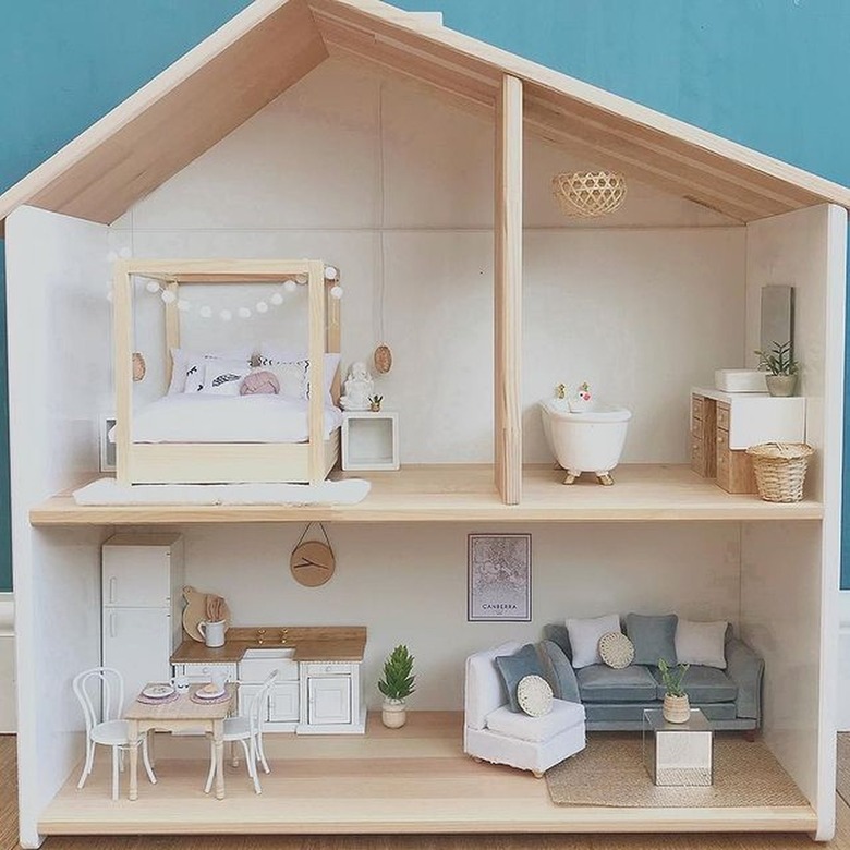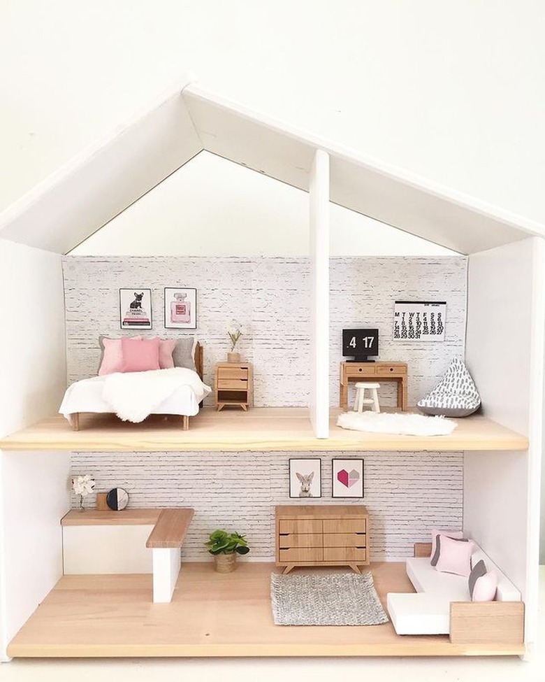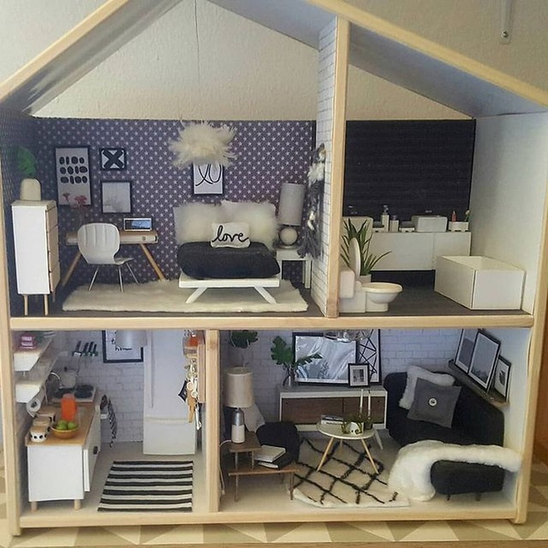 Putting in some sweet wallpaper and propping up the house on a base makes it look totally professional.