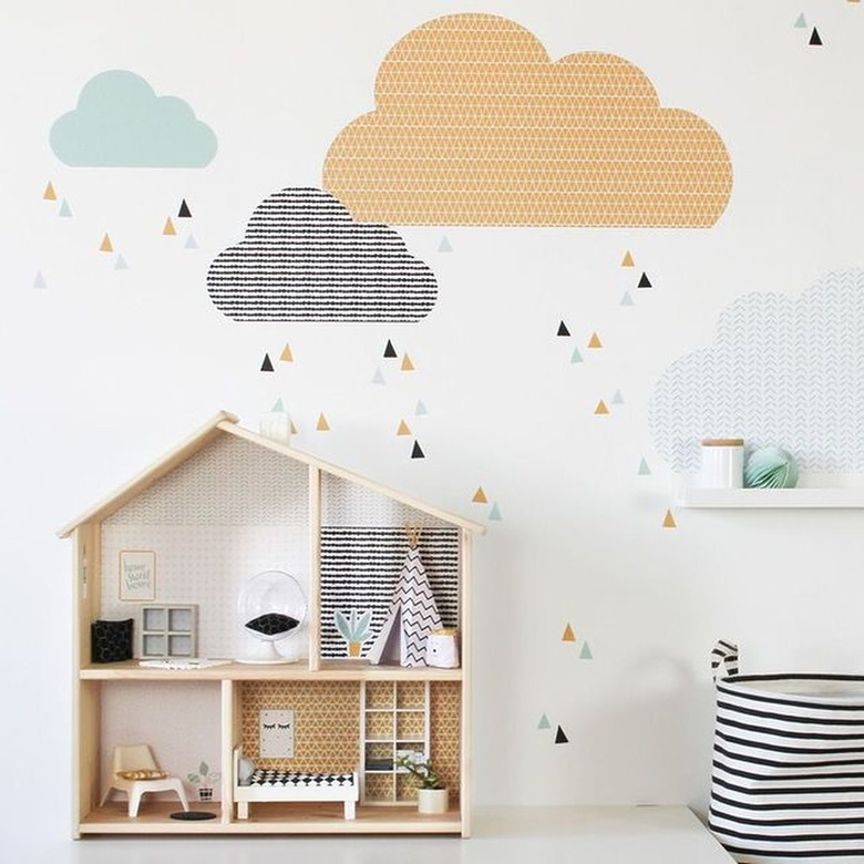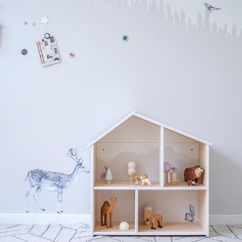 By adding the silhouette of a wooded landscape and some wood toy animals, you can create a highbrow, gender-neutral play zone.