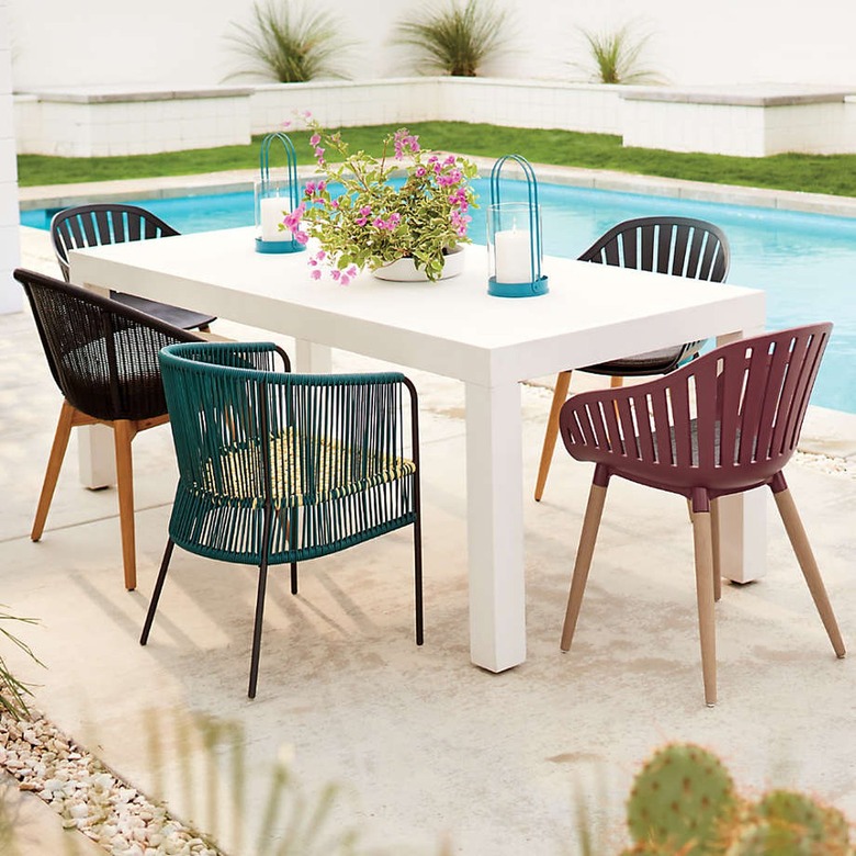 This contemporary retreat offers a maximalist touch to an otherwise neutral space. If you're looking for a way to bring different colors, textures, and designs to your patio, consider stocking up on unique single seats rather than sets.