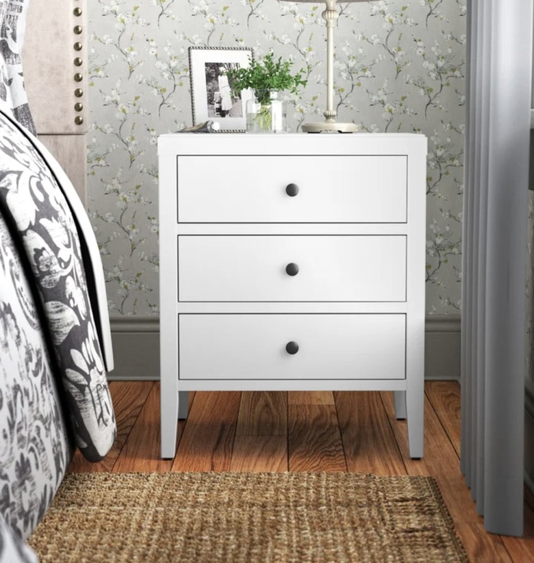 7. Andover Mills White Rushville 3-Drawer Nightstand, $99.99
