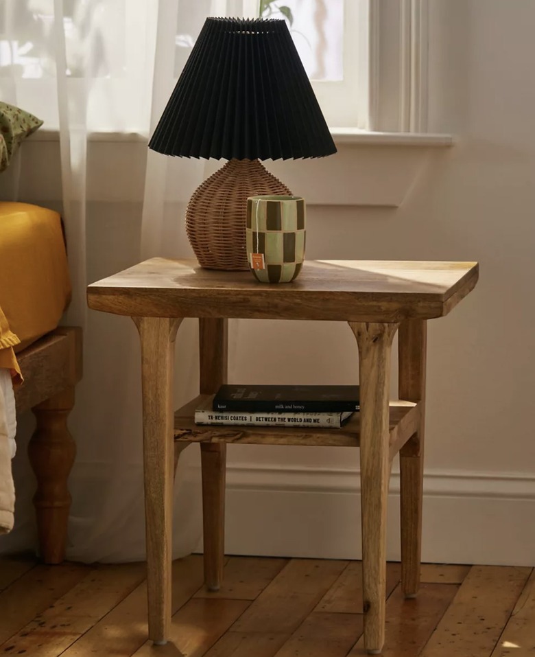 For the boho set, Urban Outfitters' Wyatt nightstand in a mango wood finish brings an eclectic vibe to your bedside — and its unique silhouette looks Instagram-ready.