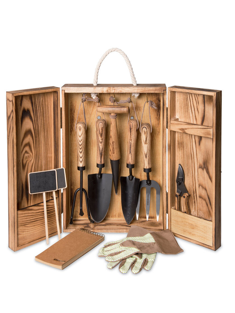 One to try: If you feel like splurging, get all of these and a few other important tools together in the Complete Intervale Garden Tool Collection. It includes six important hand tools: cultivator, trowel, transplant trowel, fork, dibbler, and pruners as well as gloves and a notebook. All come in an appealing pine storage case.