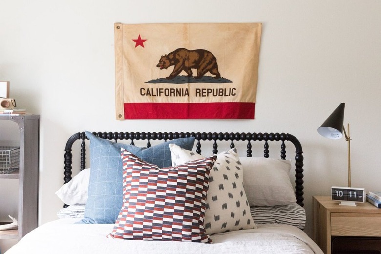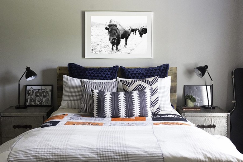 When it comes to decorating a teenage boy's bedroom, there can be such a thing too much color. While bold, over-saturated hues can run the risk of veering into juvenile territory, strategically placed pops can look youthful yet elevated. Take this room by Studio McGee, for example. The red, white, and blue throw pillows strike a balance between subtle and statement — all while complimenting the California Republic flag above the bed frame.