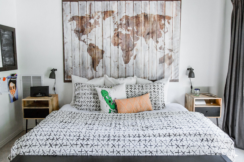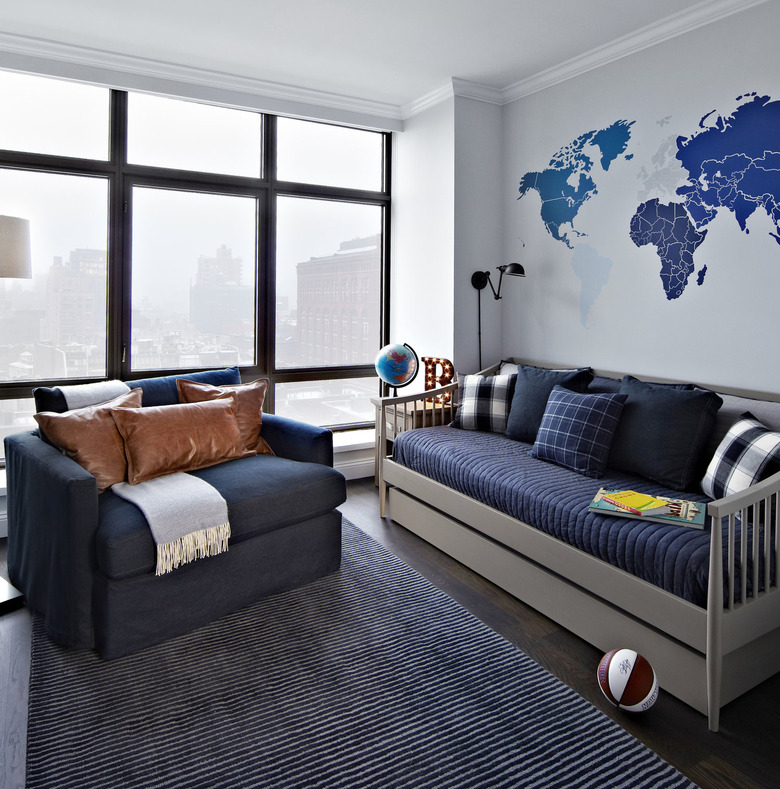As Hi, Sugarplum's take on a typical teenage boy's room proves, you can make a room feel inspirational and educational without being too on-the-nose. The map art above the bed doesn't feel like it was plucked directly from a classroom, and the chalkboard plays into the color scheme while also being practical.
