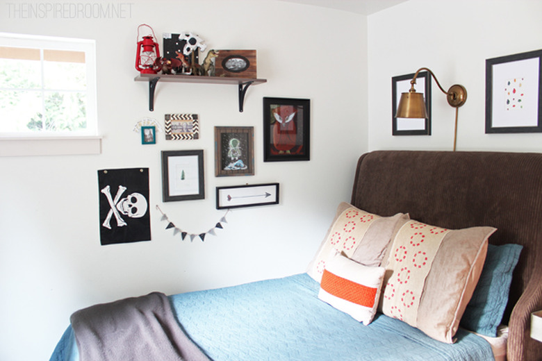 Think art-clad gallery walls are too mature for a teenager's bedroom? Take a cue from the Inspired Room and hang up various prints, flags, and, yes, the occasional garland. Not only does this give the typical gallery wall a cheery, personalized flair, but you or your teenager can easily change the layout as he becomes a bonafide adult.