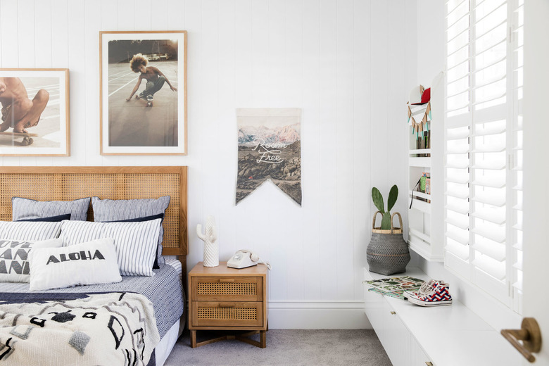 Once upon a time — you know, back when the teenager in question was just a kid — you'd fill the room with furniture that was stain-resistant, spill-friendly, and free of more delicate materials like glass and suede. Now that your boy is growing up, it's time to trade in the kid-friendly furniture for adult-approved alternatives. In this project by Three Birds Renovations, the caned furniture and nightstand look stylish, not stuffy.