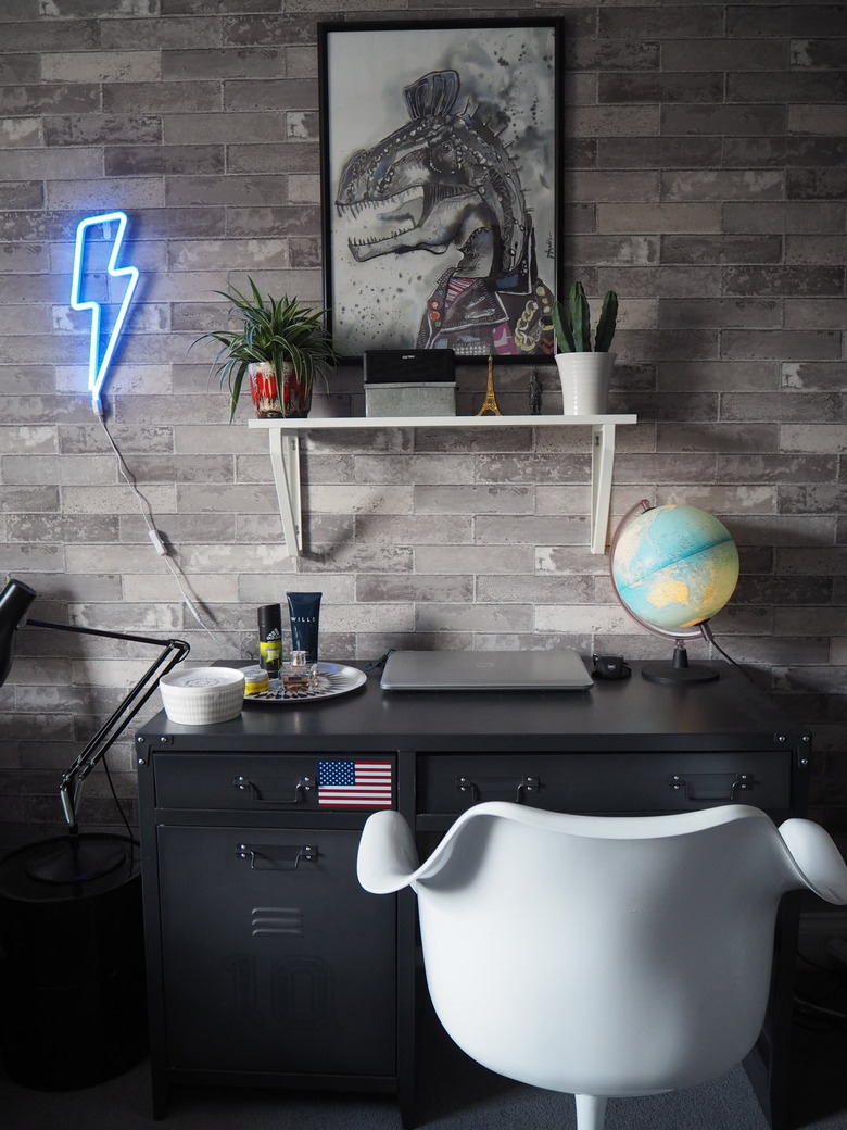 Behind every grand, 'gram-worthy room is an eye-catching "wow" factor, so why should a teenager's room be any different? Instead of making a splash with a flatscreen television or accessorizing the space with the latest gadgets, opt for a neon sign. In this room Lisa Dawson created for her son, the blue lightning bolt light makes a splash against the brick wall and muted color palette.