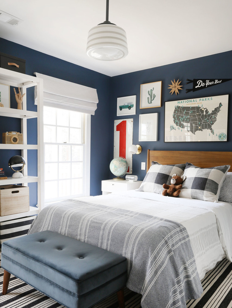 Shiplap walls immediately add character to an otherwise plain room, making it an ideal choice to achieve an interesting but relaxed look. Recreate this minimal boys' bedroom idea by Shea from Studio McGee by painting the shiplap walls a crisp, airy white so the space feels more modern than rustic.