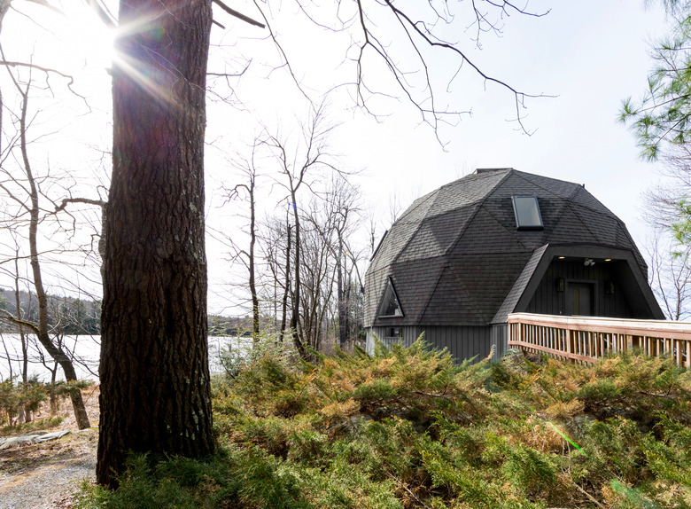 The geodesic dome is one of the marvels of twentieth-century design and engineering. A quick history lesson: When the U.S. suffered a housing shortage in the 1940s, architect R. Buckminster Fuller had a solution: the geodesic dome. Fuller's idea never caught on widely, but some of the domes can still be found across the country. Case in point: this dome on Lake Seneca in Massachusetts, built in the '80s, and recently rehabbed by Jess Cooney, founder of Jess Cooney Interiors, with the help of 377 Builders.