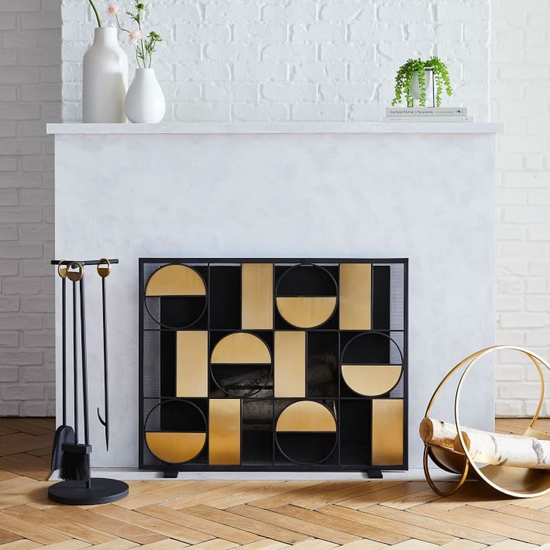 Before you gather 'round the fire, give your hearth a makeover with Elm's Graphic fireplace set, which includes a screen, tools, and log holder (you can also purchase the pieces individually).