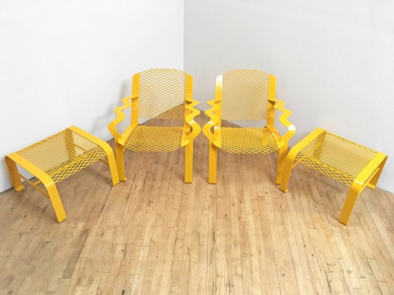 Memphis School Yellow Steel Chair and Ottomans (set of two), $1,200