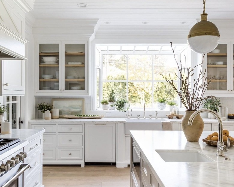 Adding a touch of vintage farmhouse design to your home doesn't require much. While you could certainly go for an all-out makeover by replacing your sink or turning an antique sideboard into a vanity, you can also make a big impact with small touches. For example, replace fixtures like doorknobs and faucets with vintage-inspired options. Add a still-life painting to your kitchen or a rustic stool to your bathroom. Paint your closet door a pretty pale pink. These simple accents will add a lived-in warmth to your space, no matter how long ago it was built.