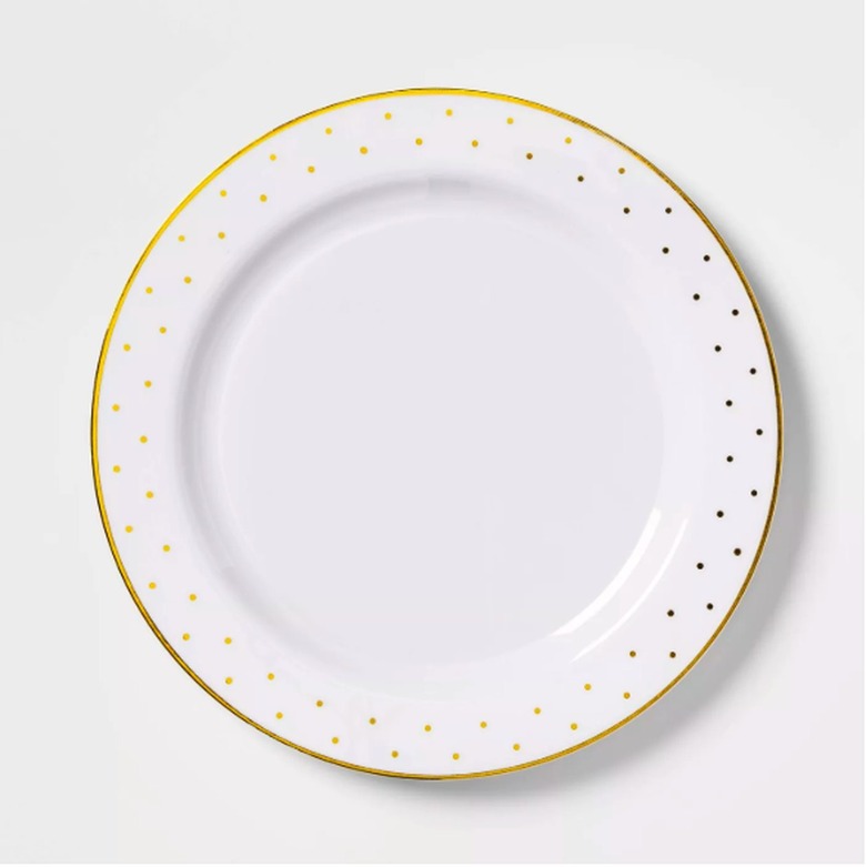 If you want to serve the kids dinner on something indestructible to avoid any dropped-plate disasters, pick up a pack of these gold-dotted disposable dishes. They look so much like the real thing that adults might plop down to eat without realizing they're at the kids' table.