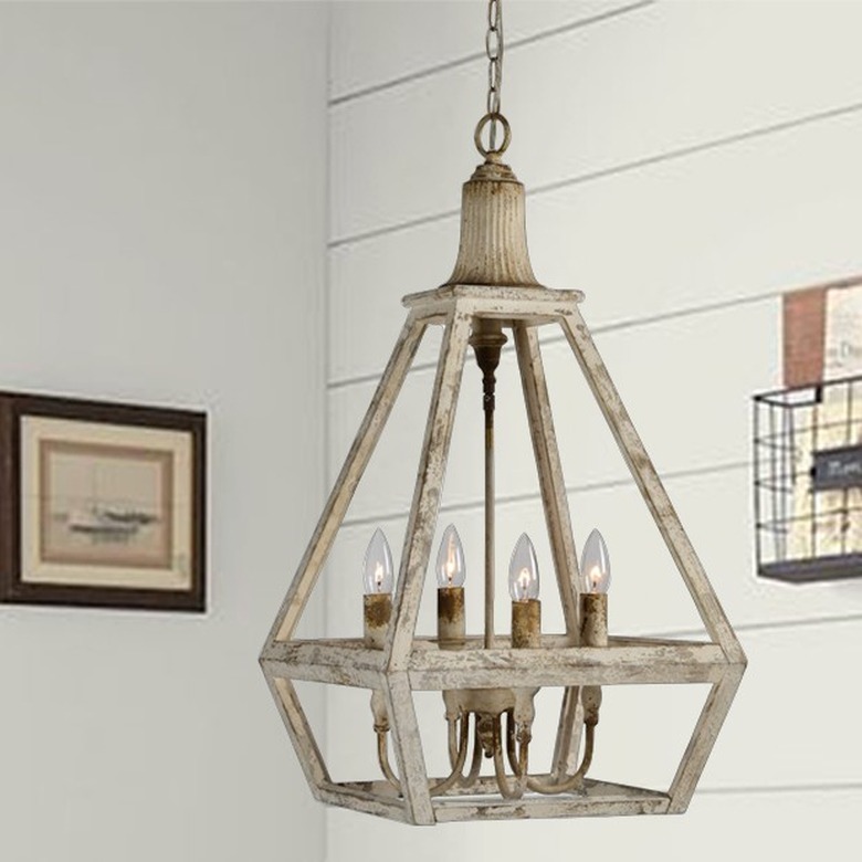 Hang an eye-catching provincial-style pendant light with a distressed wood finish, like the Distressed Style 4 Blub Pendant Light at Antique Farmhouse, above your kitchen island to make a rustic statement.