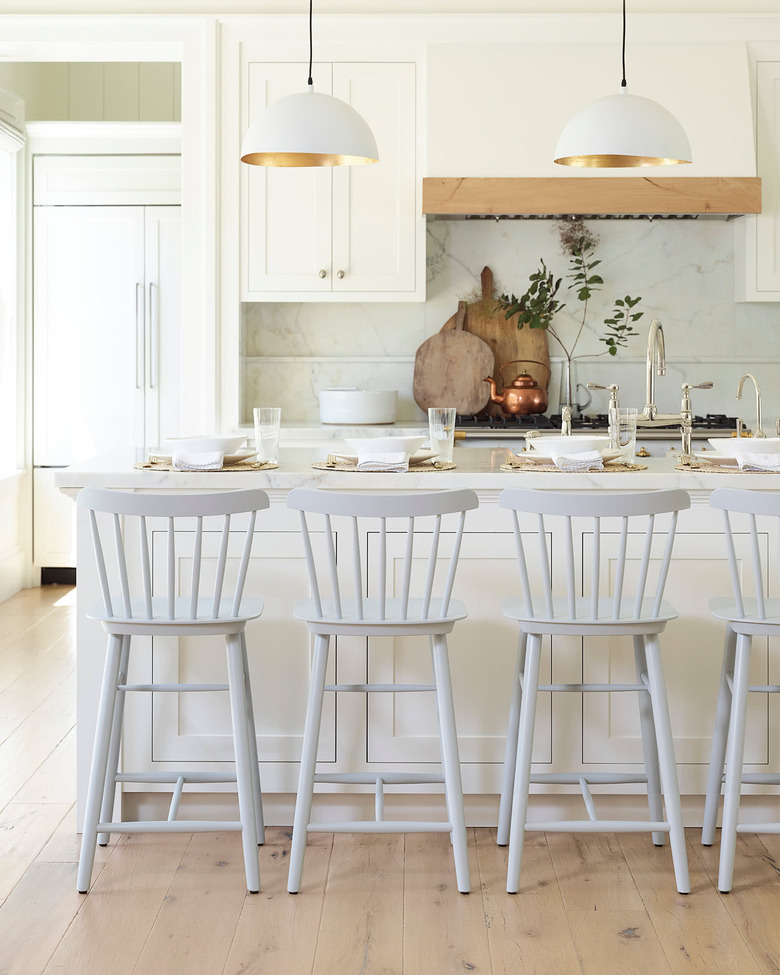 Transform your kitchen island into a farmhouse-style breakfast nook by pulling up a pair of shaker-style counter chairs, such as the Tucker Counter Stool at Serena & Lily.