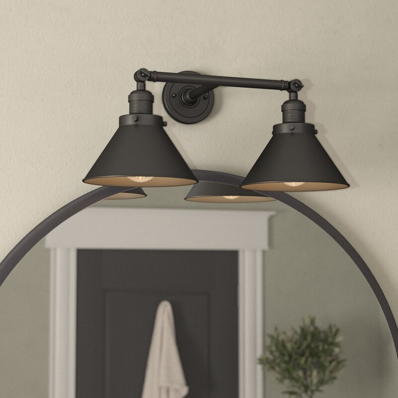 Add a dash of farmhouse-style drama to your bathroom with raw metal pendant vanity lights, like the Stonecrest 2-Light Vanity Light at Wayfair.