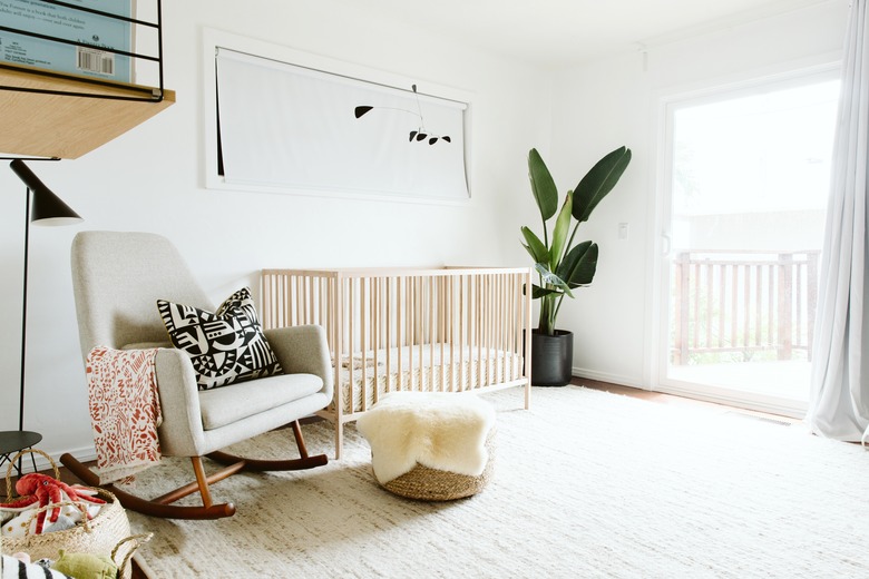 Next, you'll tackle the color palette. You can absolutely go gender-neutral, but if you know you're having a boy or a girl, you can definitely opt for classic blue or pink. For a more current look, ponder non-traditional colors like yellow, white, gray, or green. Remember, the palette should be soothing to you as well since you'll be spending a lot of time here. Now it's time to come up with a theme for the nursery. We're partial to styling that looks like it could live in any room in a current home, depicting Scandinavian, farmhouse, modern, or bohemian looks.