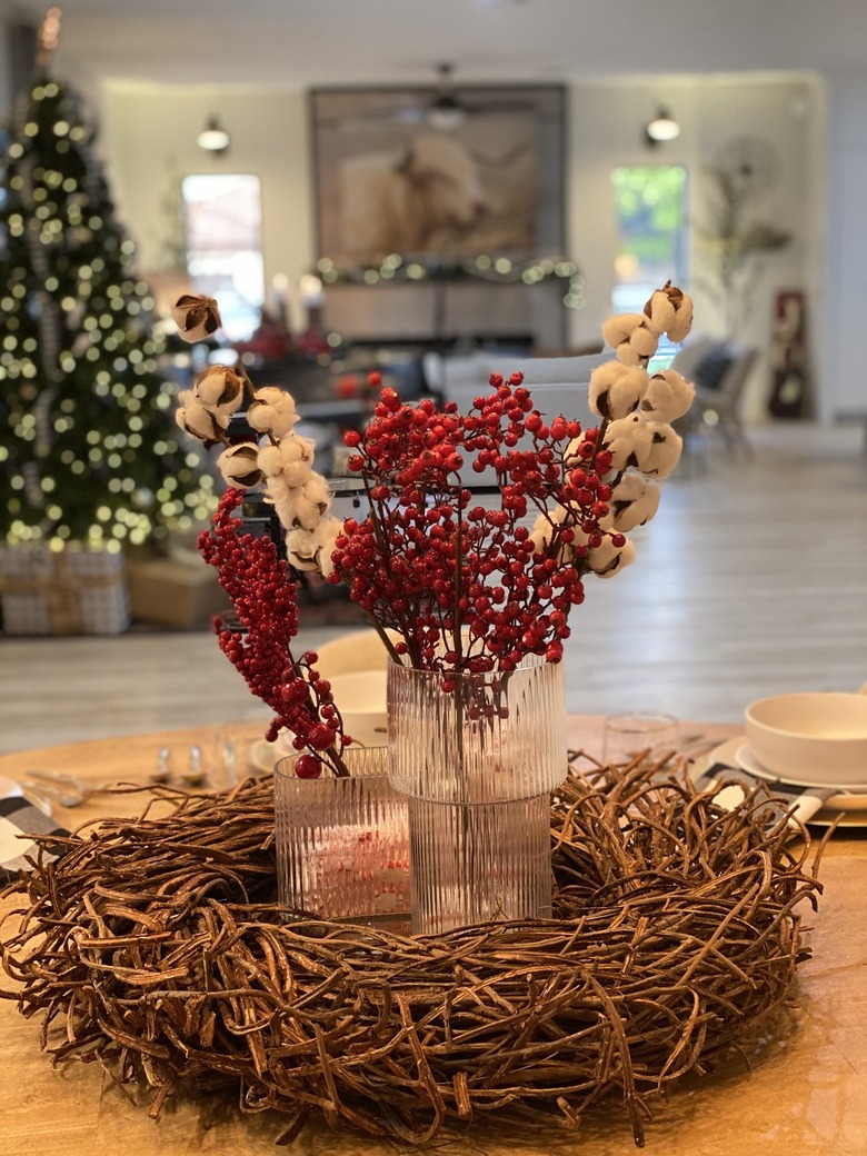 Victoria Tik of Aesthetik Design changes up her centerpiece decor by the season. "Christmas is an especially fun time of year. Using seasonal flowers or even food is a great way to decorate. She suggests going through your holiday decor and finding the things you like best. "I commonly use wreaths — the simpler ones the better," she says. "I find they make great centerpieces for any shape table. I put a few candles in between or add some extra foliage or ornaments, and you have something beautiful and elegant."