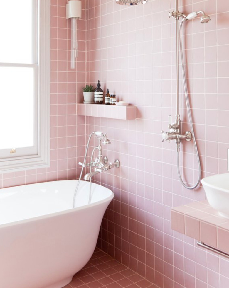 Commit to a color that's sure to bring you a daily smile like pink. This look from 2LG Studio is so sweet we need cut back a little on our sugar intake, but still so soothing. Who doesn't want to wash off in such serene surroundings?