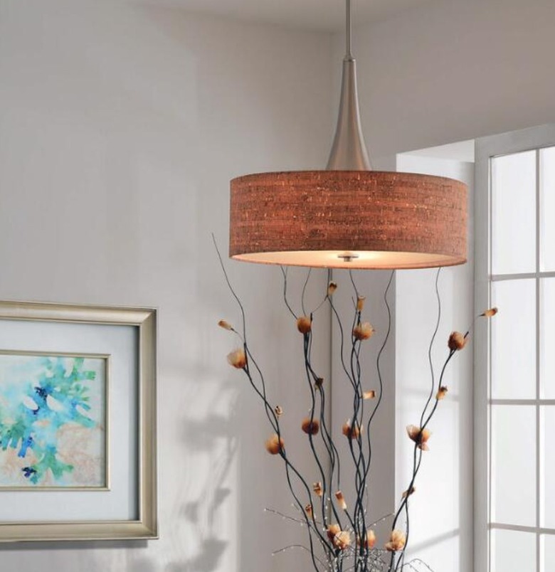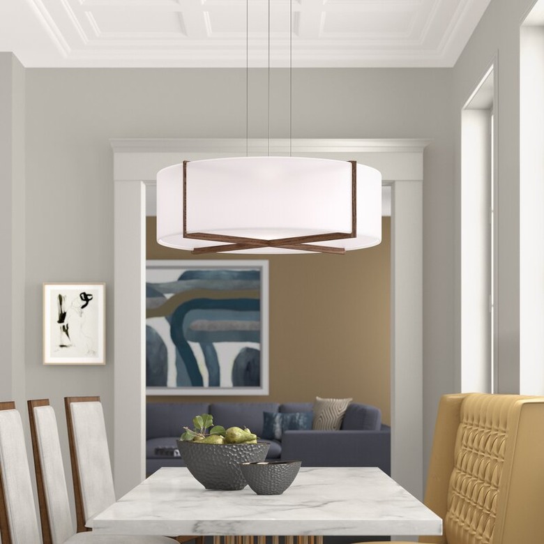 Clean lines and a shade covered in cork? Now that's what we call a drum lighting win-win! Not to mention, it's a pretty snazzy way to bring an organic element into your dining room. We like the polished nickel finish of the base that adds an extra layer of sophistication. This fixture from World Market would look extra lovely in a dining area that also shares space with a living room.
