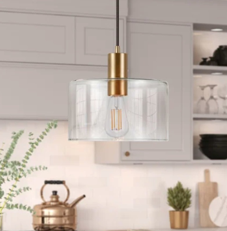 Drum fixtures don't have to block out all the light. Try a ceiling light with a clear glass shade like this charmer from AllModern. The size makes it an excellent solve for smaller spaces. Double or triple up in a larger dining room or over a kitchen island. And don't forget some Edison style bulbs for some extra special effects seen here.