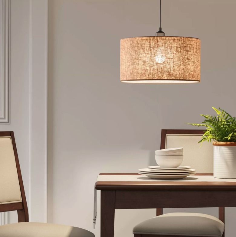 Prefer drum lighting for the dining room, but want to keep it simple like this look from Target? This fixture's minimalist design and natural colored linen shade make a subtle statement that's far from boring. We love this look for an apartment where you want to switch out a fixture but don't want to spend a lot of money to add some style.
