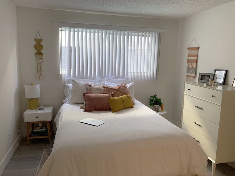 For my bedroom — which is admittedly very small — I wanted to focus on decor, rather than big-ticket furniture items, since I didn't anticipate staying long (I have since moved out). Plus, I had a rather large closet and had already hidden a dresser in there, so I didn't need much in the storage and furniture department. I also realistically had to keep my budget low, so I asked them not to exceed $2,000.