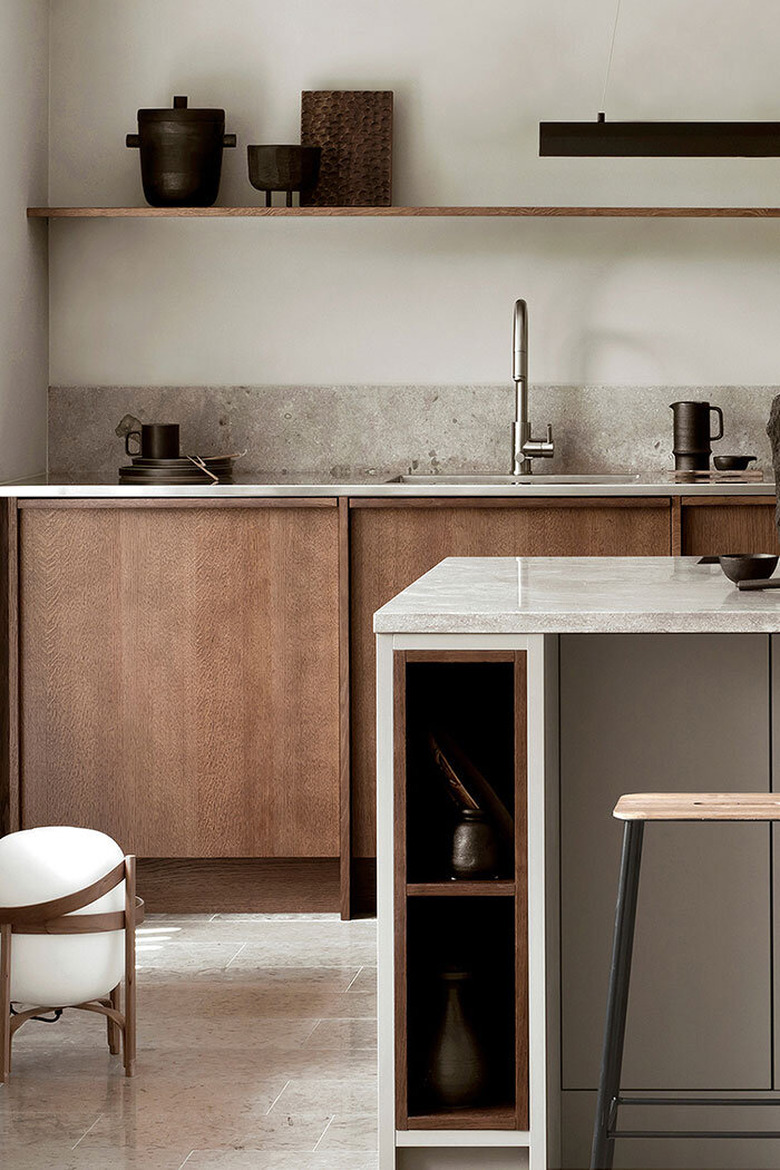 If you're more of a fan of uniform kitchen tiles, go for a style like this one. When combined with wood cabinets — sans hardware for a minimal look — and a kitchen island, the flooring helps complete a Scandi-chic cook space.