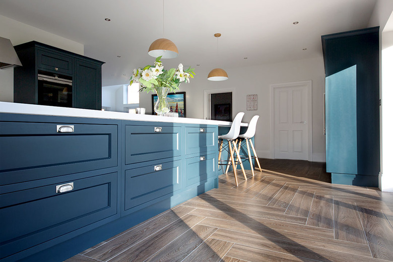If you want to go for a classic hardwood floor style, opt for a style like this one. The dark hue goes great with deep blue cabinets and white walls. This particular model comes in five different natural hues, but we love this quintessential tone.