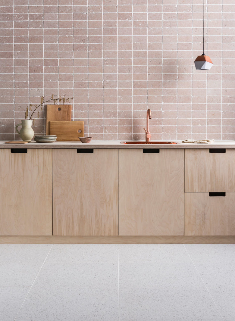 Terrazzo has been in vogue again for the last couple of years, and we don't see it going anywhere any time soon. This porcelain tile in a neutral shade adds just a hint of terrazzo to your space. Much cooler than your average kitchen flooring in a light hue.