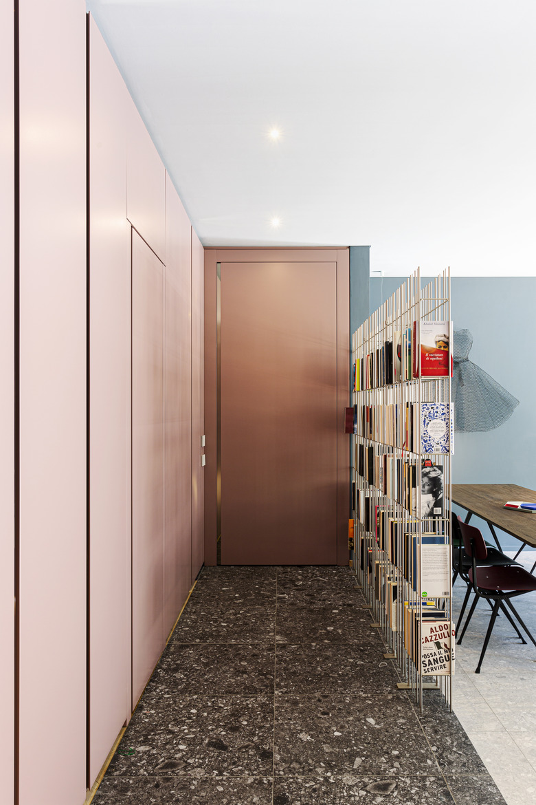 Located in the Cinque Giornate area in the fashionable Milan, Italy, a family of four hired local architectural studio Offstage to transform their apartment from an open space with a cramped kitchen into a comfortable home featuring an exciting array of bold colors. Housed in what was originally a midcentury-era factory, Offstage used bright elements — including powder blue walls and various hues of pink — to insert fun and creativity into the design.