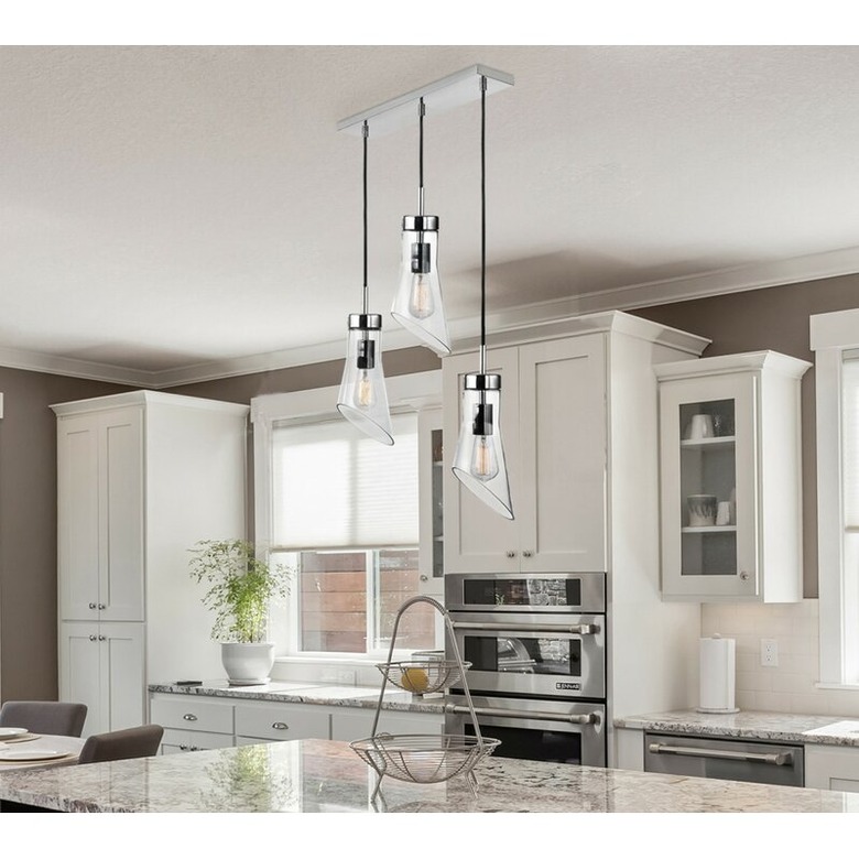 Nothing upgrades a kitchen island faster than an eye-catching pendant light. A sculptural light fixture with clear glass shades brings a dash of drama to a kitchen island while supplying overhead lighting.