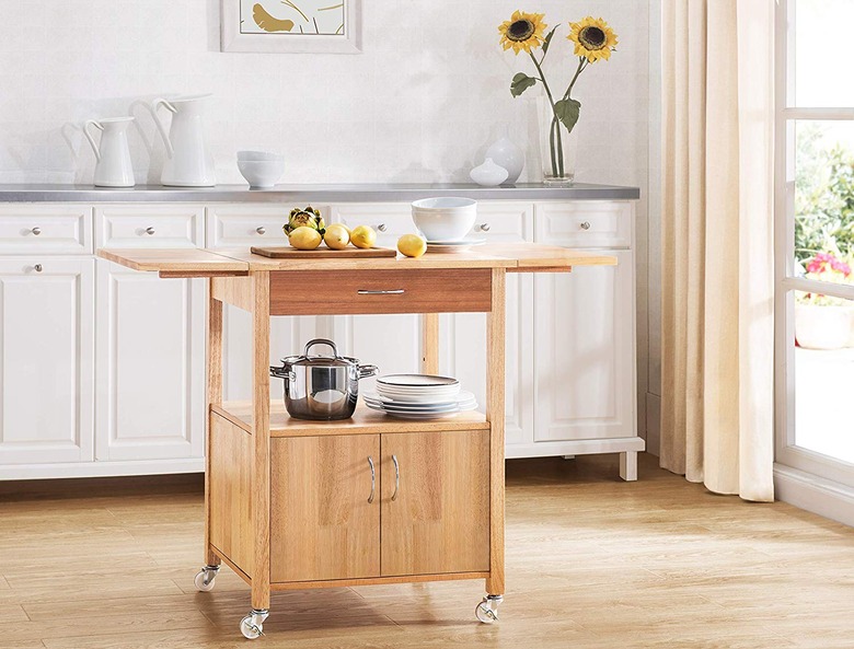 If you aren't working with a ton of square footage in your kitchen, then we have the solution for you. A compact kitchen cart with a drop-leaf tabletop doubles as a kitchen island in even the most cramped of spaces.
