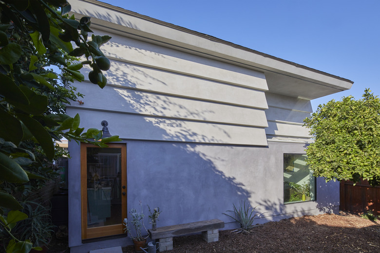 The designers took inspiration from Japanese storage houses called Kura, which they saw on a family road trip. "Kura are two stories, plastered white, and made with inflammable materials," says Sundius. "A family's treasured possessions were kept inside since fire was a common occurrence. The form of these houses and their location on the property inspired our ADU both formally as well as in our choice of plaster and concealed gutters. We wanted the building to look as clean and sharp as these wonderful Kura."