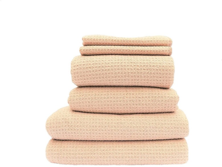 If flat-weave or classic waffle towels aren't doing it for you, this graphic jacquard leaf pattern is a great way to add texture and visual interest to your bathroom. Reviewers say that the towels are extra-plush (in part due to the woven design), soft, and generously sized. Personally, we're just sold on the playful pattern.