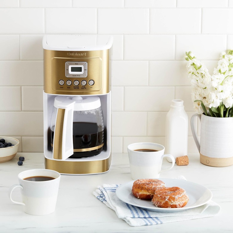 Consider this Cuisinart coffee maker a two-for-one special. Not only does it brew coffee, but it also comes with a built-in coffee grinder and has 24-hour programmability. This 12-cup coffee maker comes with a glass carafe that has an ergonomic handle, dripless pour spout, and knuckle guard to protect your hand from the heat. But that's not all. The coffee maker also comes with a water filter so you can make a fresh pot of coffee with purified water.