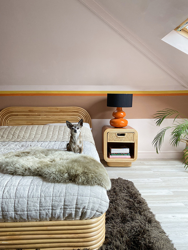 Don't be afraid of color when designing a boho beach refuge — and we're not just talking blues and greens. Coastal destinations are often graced with the best sunrises and sunsets you can find, so why not bring this palette into your bedroom? Don't forget bohemian decor staples like rattan and organic ceramics to complete the look.